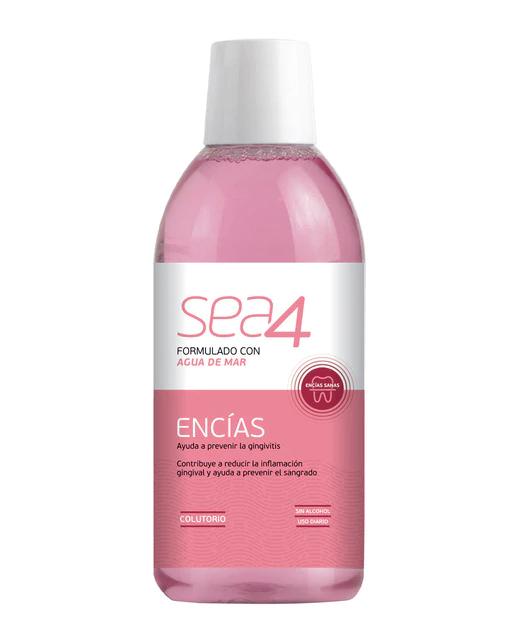 Sea4 Encías es el primer colutorio diario formulado con agua de mar, especialmente indicado para ayudar a prevenir la gingivitis, favoreciendo la reducción de la inflamación gingival y ayudando a prevenir el sangrado en encías delicadas.