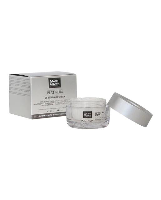 La crema revitalizante e hidratante de larga duración GF Vital-Age Cream Piel Normal/Mixta revitaliza y restaura con un efecto matificante. Además, mejora la textura y el estado de la piel, repara, protege y reafirma y promueve la síntesis de colágeno y ácido hialurónico.\r\n\r\nTodos los activos: Factor de crecimiento epidérmico Complejo Hidratante\r\n\r\nModo de aplicación\r\nGF Vital-Age Cream aporta un efecto matificante a la piel normal y mixta. Mejora su textura a la vez que la hidrata, repara y protege, ya que contiene factor de crecimiento epidérmico y un complejo hidratante.\r\n\r\nCoger una pequeña cantidad de crema utilizando la espátula.\r\nAplicar cada mañana sobre cara, cuello y escote.\r\nRealizar un suave masaje hasta su total absorción\r\n\r\n