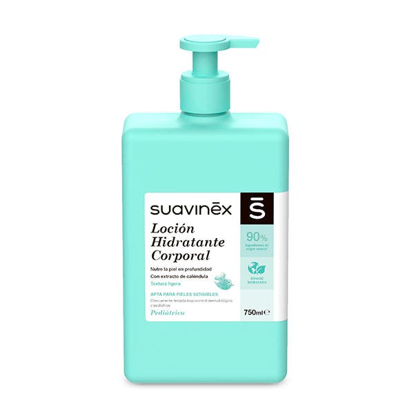 La loción hidratante corporal Suavinex nutre la piel del bebé protegiéndola de las agresiones externas, dejándola tersa y suave gracias a su fórmula con aceites de origen vegetal. Con pH 5.5, respeta la piel y favorece la formación del manto ácido de la piel del recién nacido. Su textura ligera de rápida absorción es ideal para practicar el masaje con el bebé. Incorpora extracto de melissa, conocido por sus propiedades relajantes. Dermatológicamente testado.