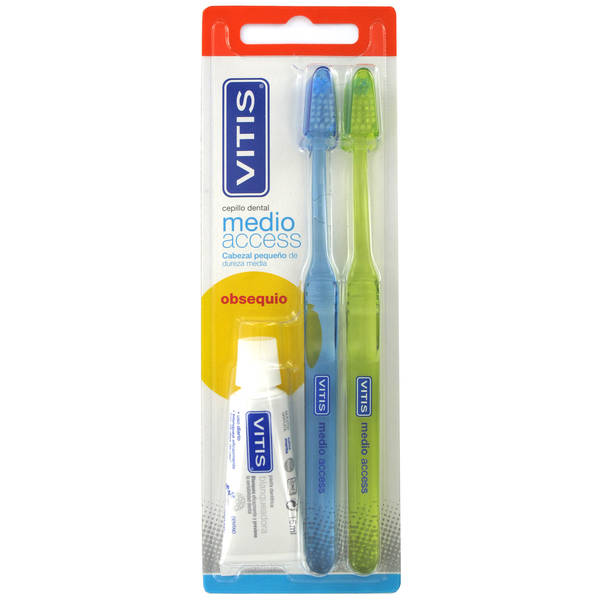 Vitis duplo cepillo dental adulto medio aCCess + regalo pasta blanqueadora 15 mL